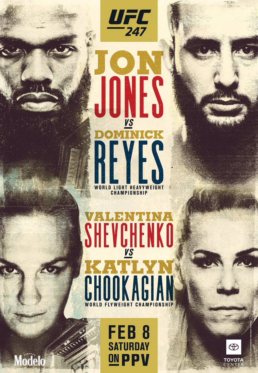 This coming Saturday at the Toyota Center in Houston, light heavyweight champion Jon Jones and challenger Dominick Reyes will headline the UFC 247 main card. In other championship action, flyweight Valentina Shevchenko will defend her belt versus Katlyn Chookagian.